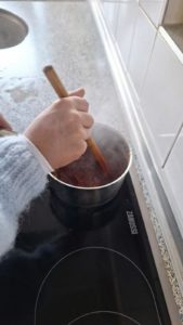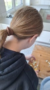 Am Anfang war es etwas ungewohnt, aber später lief es gut. Pro Gruppe wurden drei Soßen hergestellt, die am Ende alle ein wenig unterschiedlich schmeckten. Die eine Soße schmeckte besser als die andere.