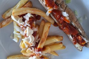 Nach etwa 45 Minuten waren alle Soßen fertig, die Zwiebeln kleingeschnitten und wir konnten die inzwischen gebratenen Pommes und Frikandeln gemeinsam essen. Nach dem Essen haben wir alles aufgeräumt.
